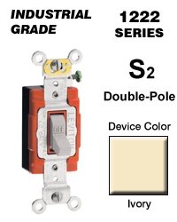 Leviton 1222-2I 20A, 120/277V, Toggle Double-Pole AC Quiet Switch, Extra Heavy Duty Grade, Ivory Feature